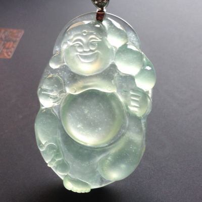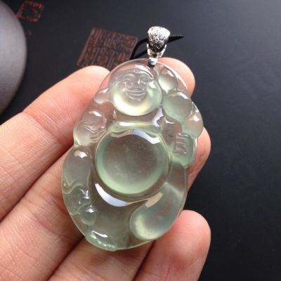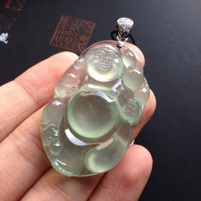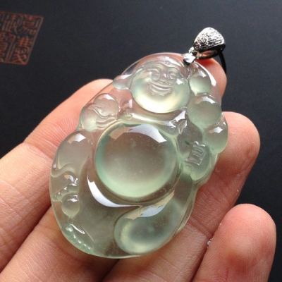 冰玻种晴水布袋佛 翡翠吊坠 裸石45-29-6毫米
