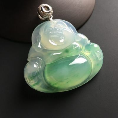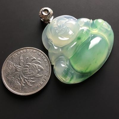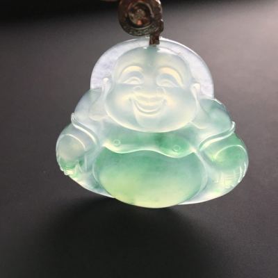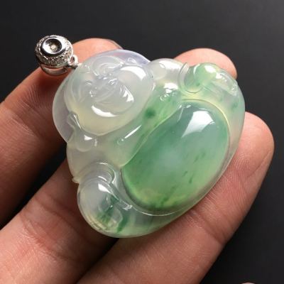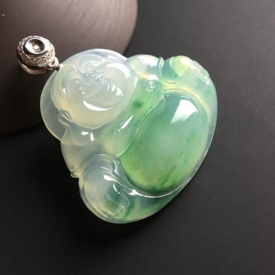 冰种飘绿佛公 翡翠吊坠 尺寸36-40-9毫米