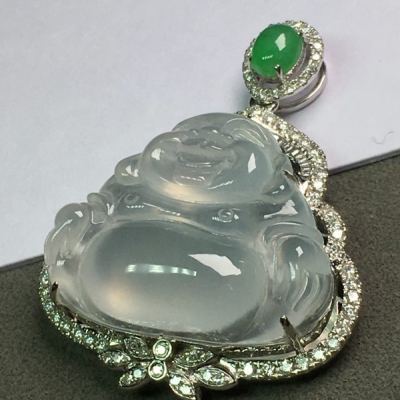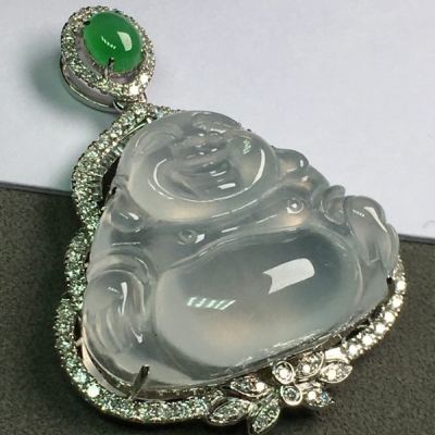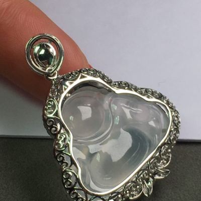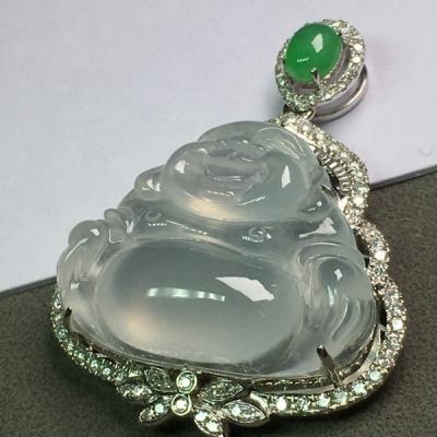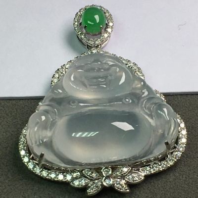 高冰弥勒佛 翡翠吊坠 水润冰透 种水足
