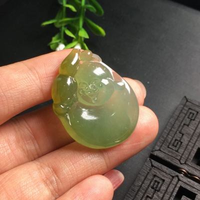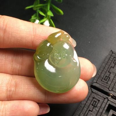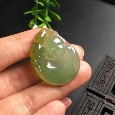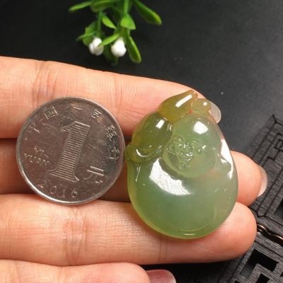 黄加绿佛公 翡翠吊坠 尺寸33.9*25.3*5.7mm