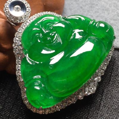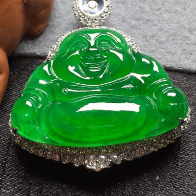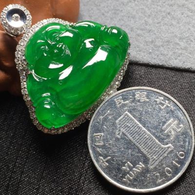 冰阳绿佛公 翡翠吊坠 裸石尺寸21.8*30.3*4