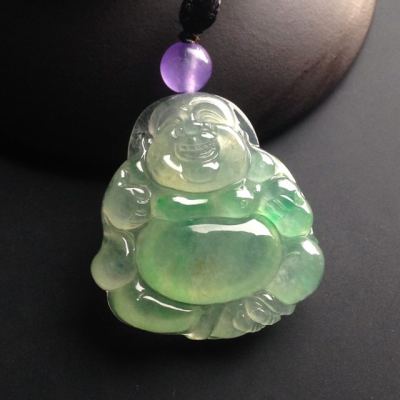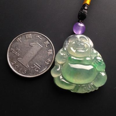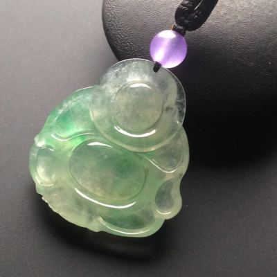冰种飘翠大肚弥勒佛 翡翠吊坠 尺寸28-26-7毫米