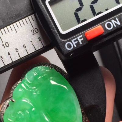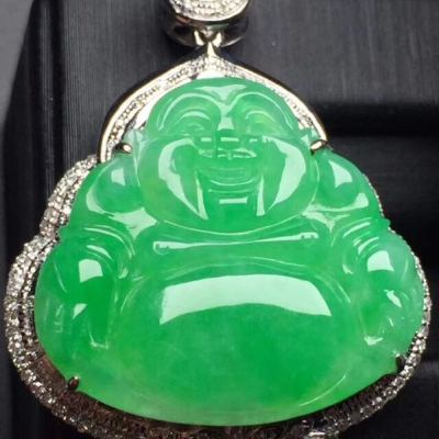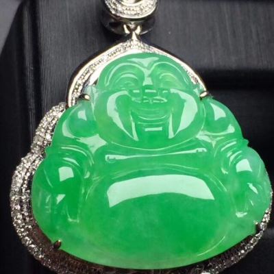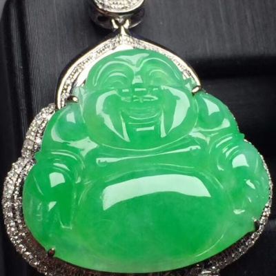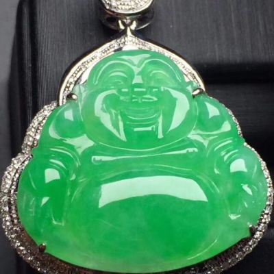 阳绿佛公 翡翠吊坠 真金真钻镶嵌 种水超好