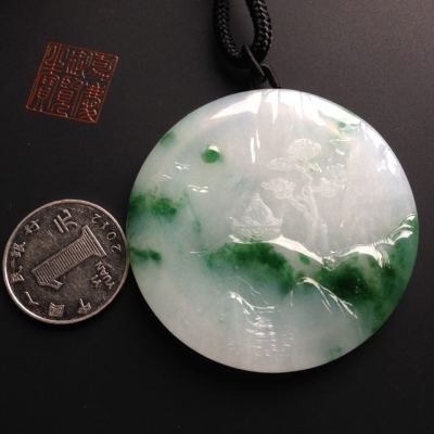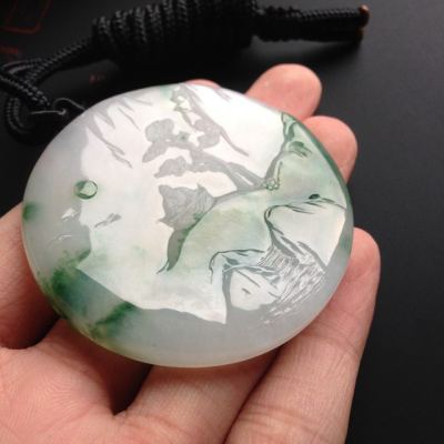 冰种飘翠忆友 翡翠吊坠 尺寸56-7毫米