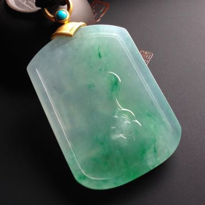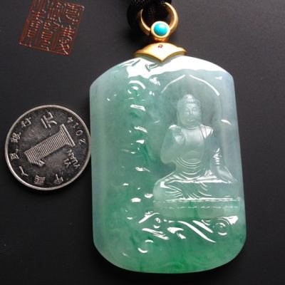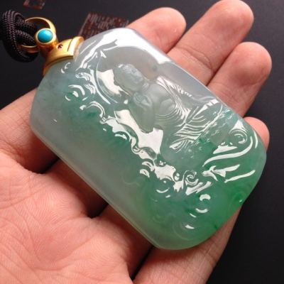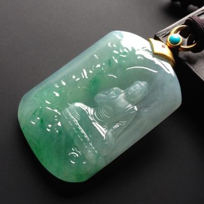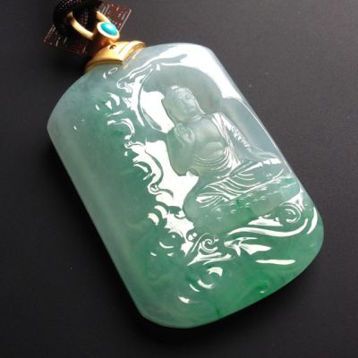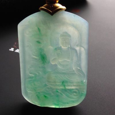 冰种飘翠大日如来 翡翠吊坠 裸石60-42-8毫米
