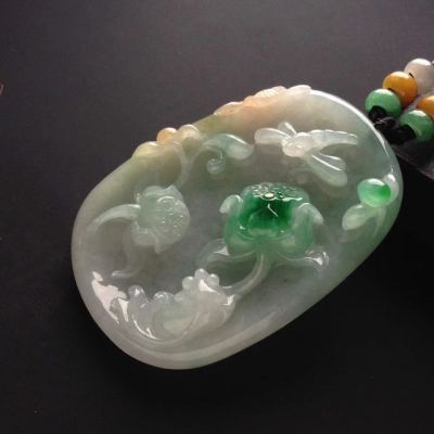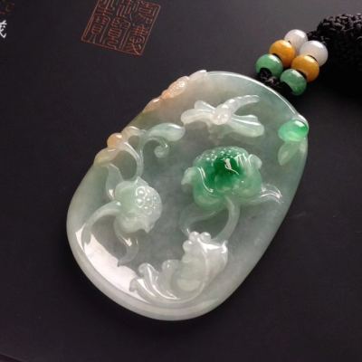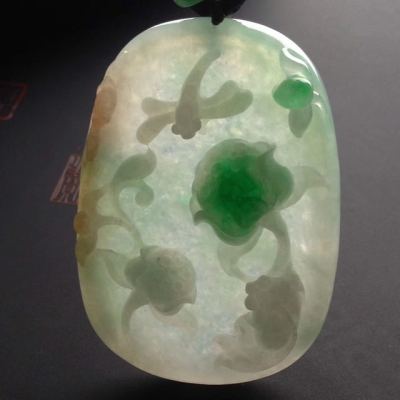 巧雕带色莲年有余 翡翠吊坠 尺寸58-42-11毫米