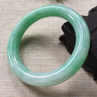 翡翠A货 糯种绿色 57.5圆条正装手镯