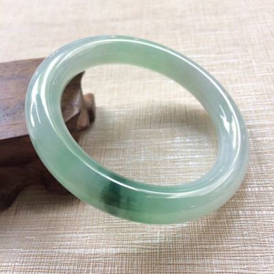冰糯飘花翡翠A货56圆条手镯