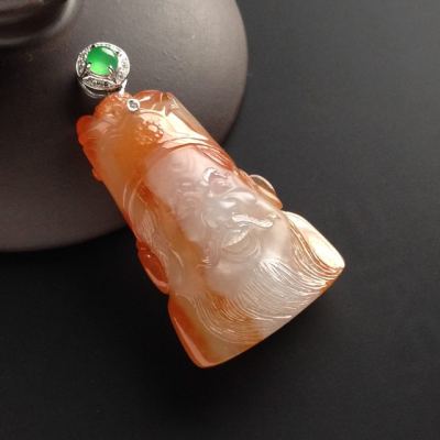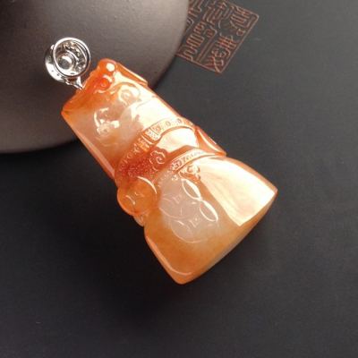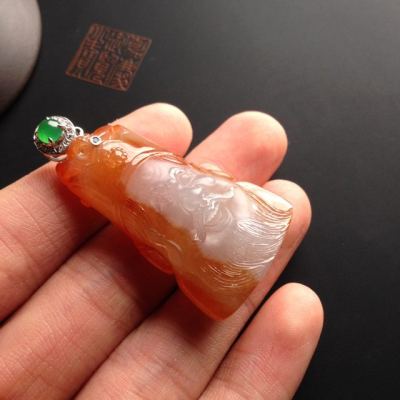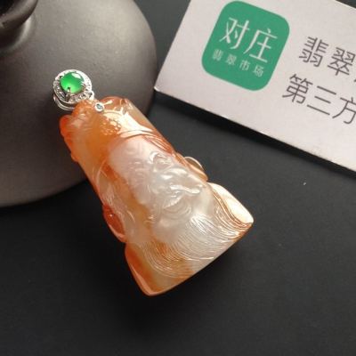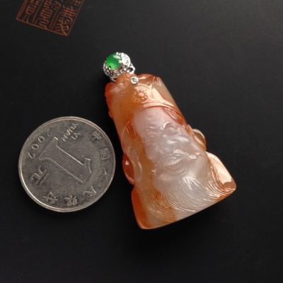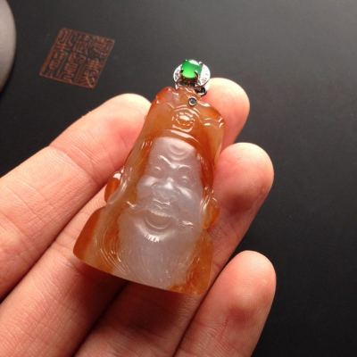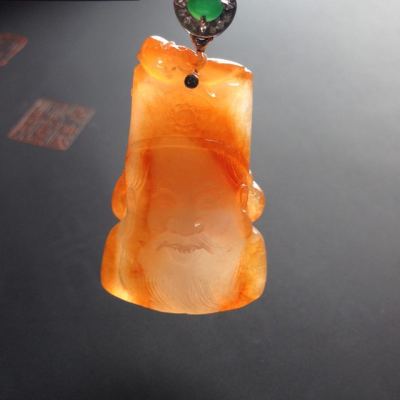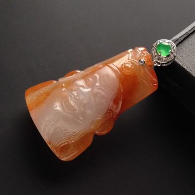 糯冰种红翡财神 翡翠吊坠 裸石尺寸38-25-12毫米