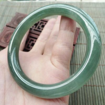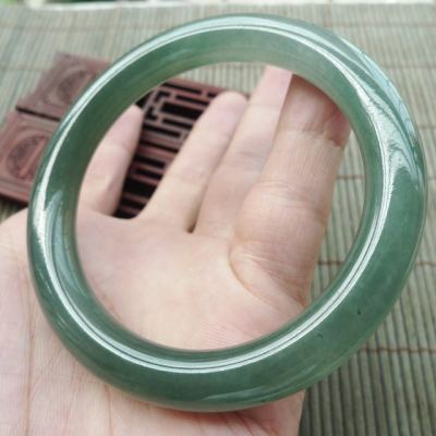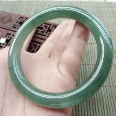 A货翡翠冰油满绿圆条手镯55.8mm