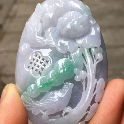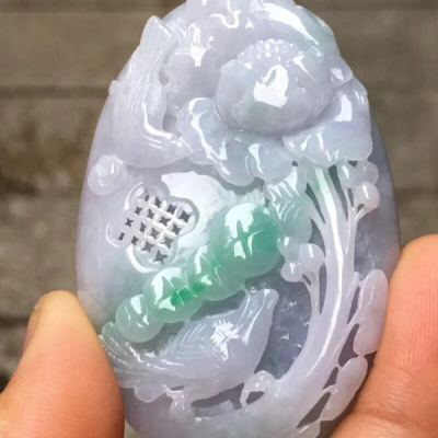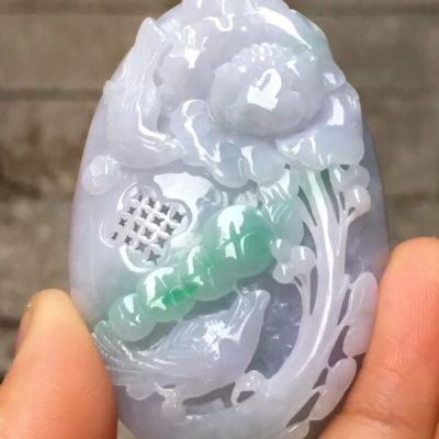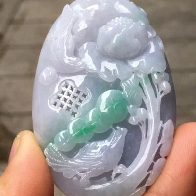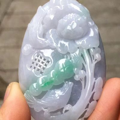 冰糯种紫底飘绿色 花开富贵 翡翠吊坠