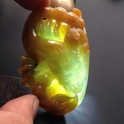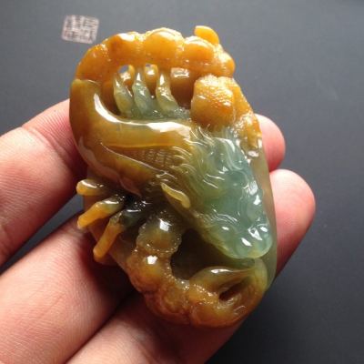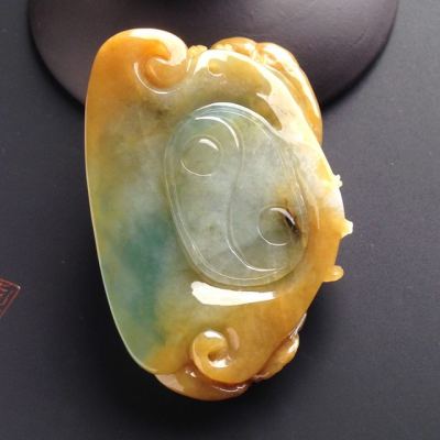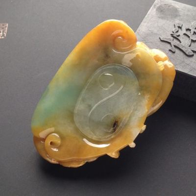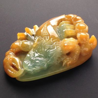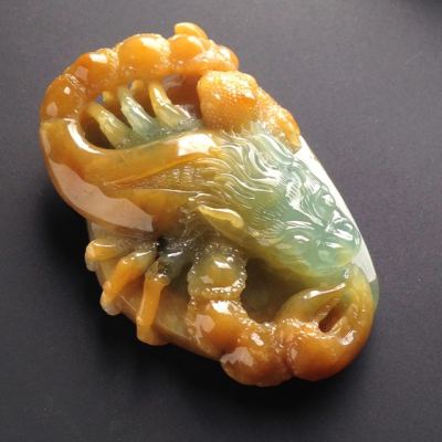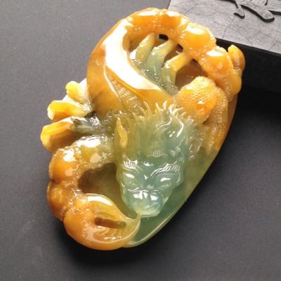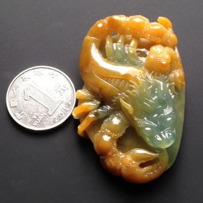 巧雕黄翡龙牌 翡翠吊坠 尺寸59-41-14毫米