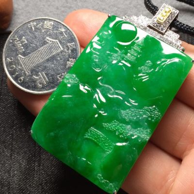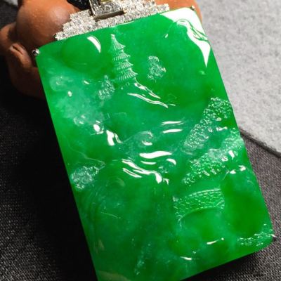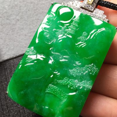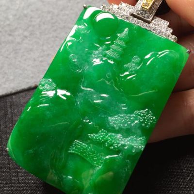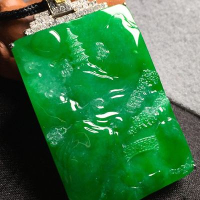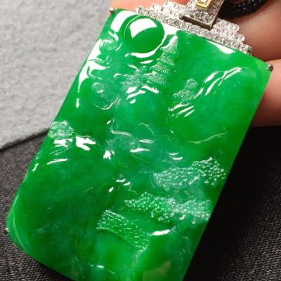 冰阳绿山水 翡翠吊坠 裸石尺寸44.5*30*4