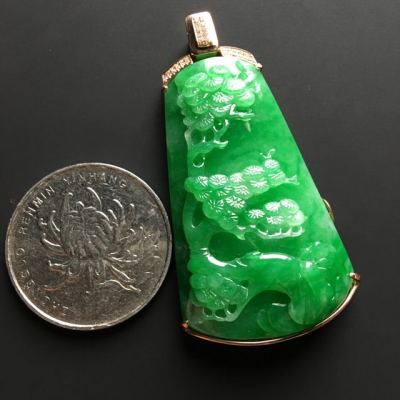 阳绿松柏常青 翡翠吊坠 整体尺寸43-27-9.5毫米