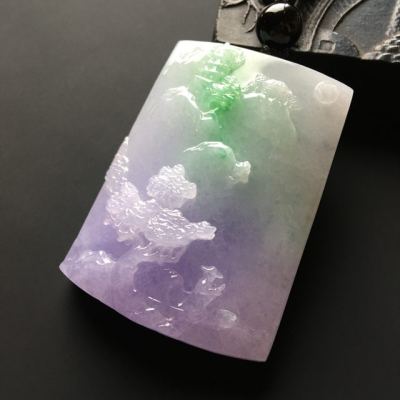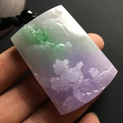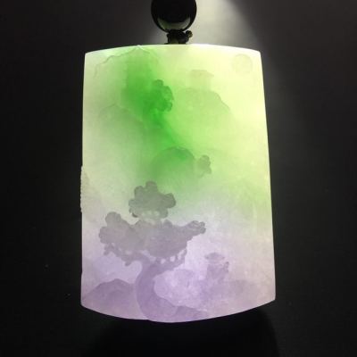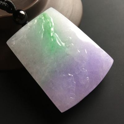 春彩山水牌 翡翠吊坠 尺寸48-35-12毫米