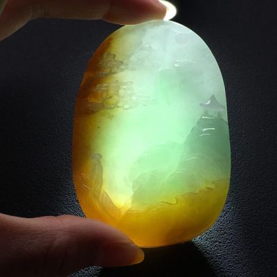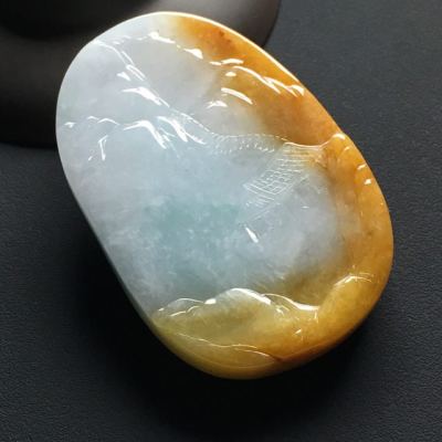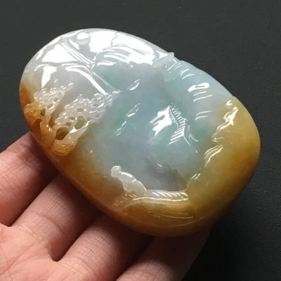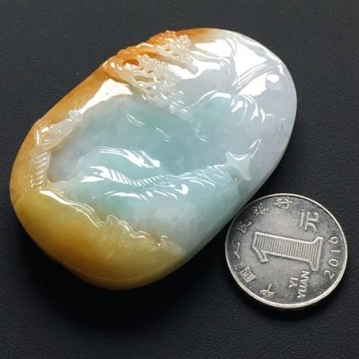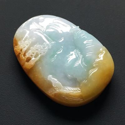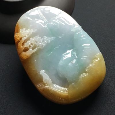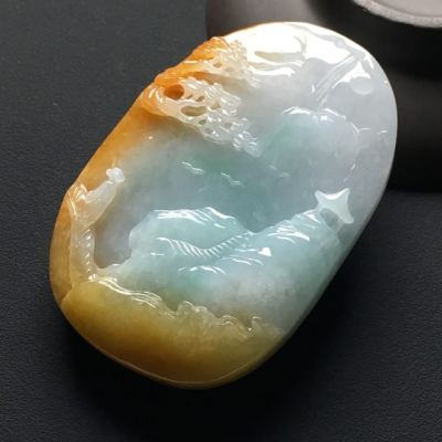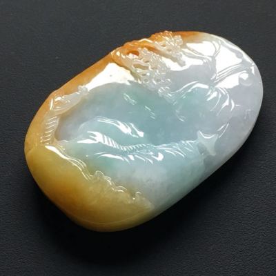 巧雕黄加绿悠然自得 翡翠吊坠 尺寸:67-45-11.6毫米