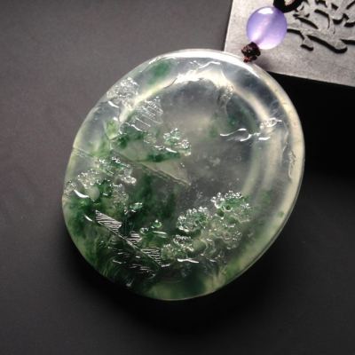 冰种飘花悠然自得 翡翠吊坠 尺寸51-45-7毫米