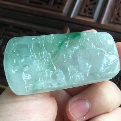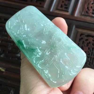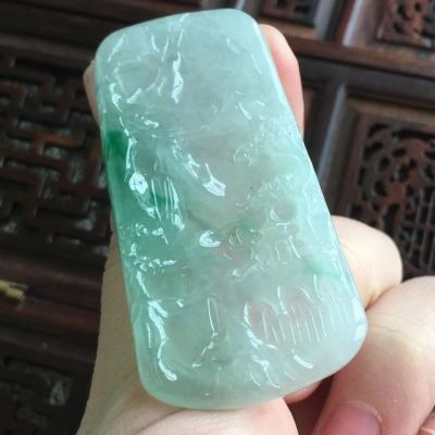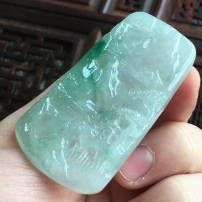 冰糯种飘阳绿山水牌 翡翠吊坠 尺寸53.8*28*5