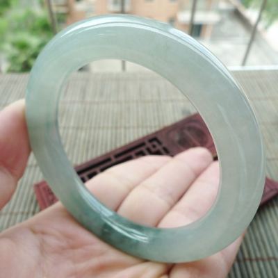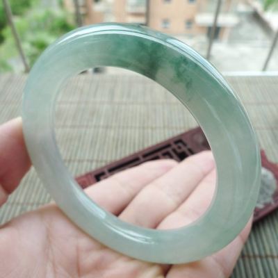 圆型扁条的翡翠手镯因为条子已经压扁,在保