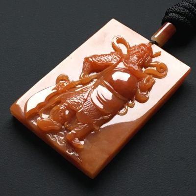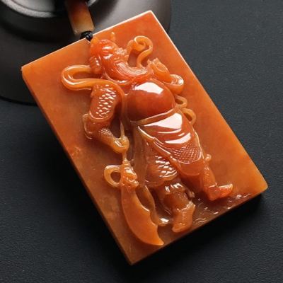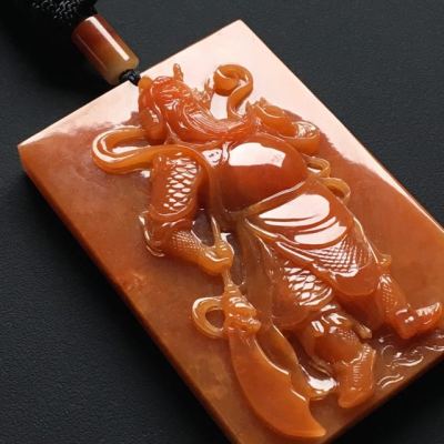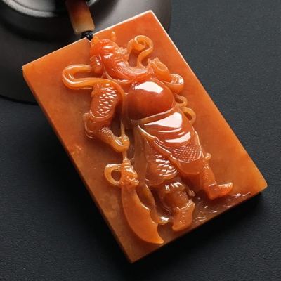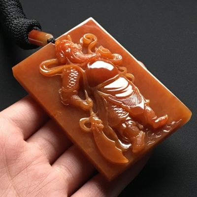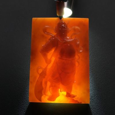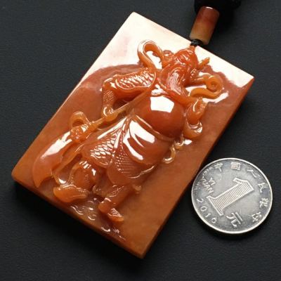 巧雕红翡忠义关公 翡翠吊坠 尺寸:68-47-12.7毫米