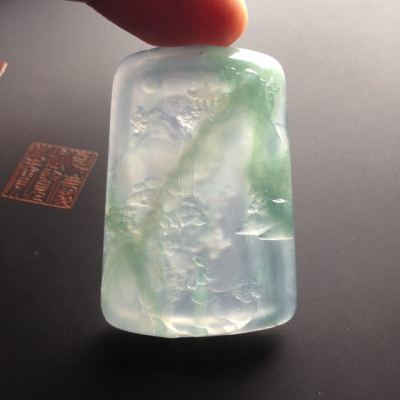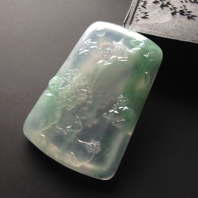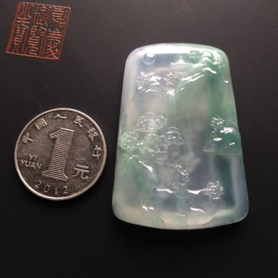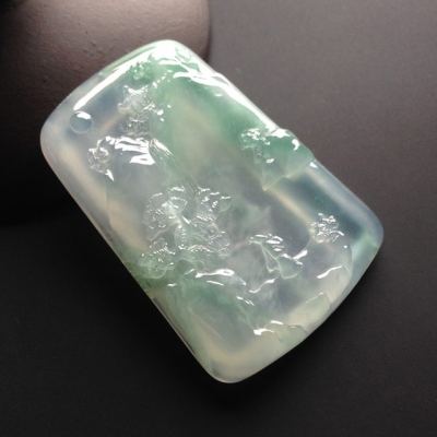 冰种飘翠悠然自得 翡翠吊坠 尺寸49-34-7毫米