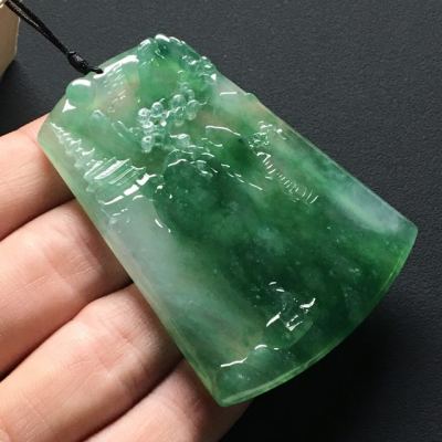 冰种飘花悠然自得 翡翠吊坠 尺寸:63-46-6.5毫米