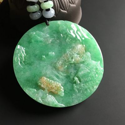 双彩山水牌 翡翠吊坠 尺寸58-9.5毫米
