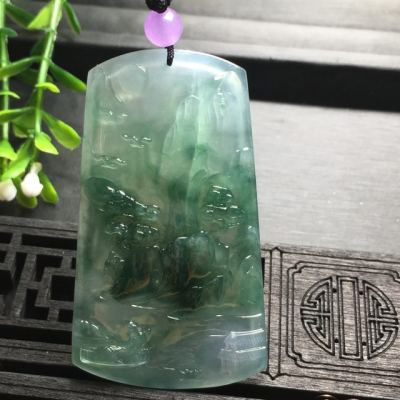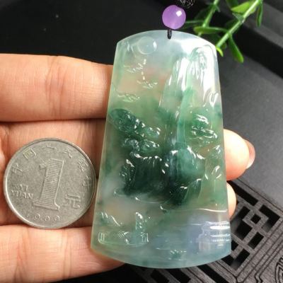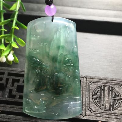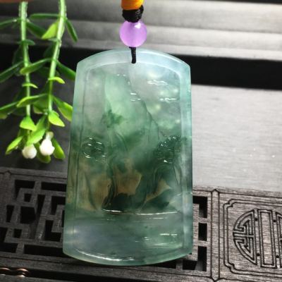冰飘花山水 翡翠吊坠 尺寸65.837.5*5.3mm