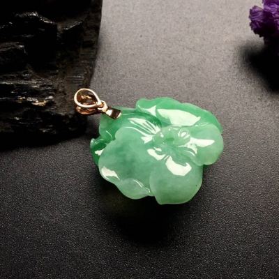 带色花开富贵 翡翠吊坠 小巧 尺寸: 25.5-24.5-15mm