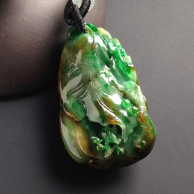 巧雕黄加绿花开富贵 翡翠吊坠 尺寸43-26-15毫米