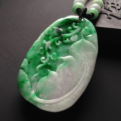 巧雕带色花鸟 翡翠吊坠 尺寸58-37-13毫米