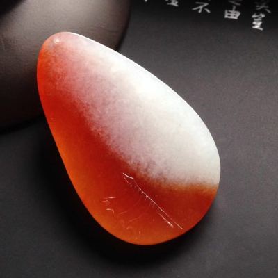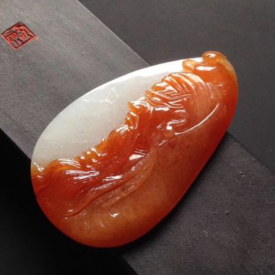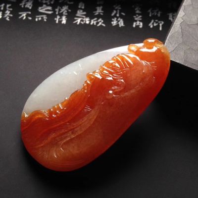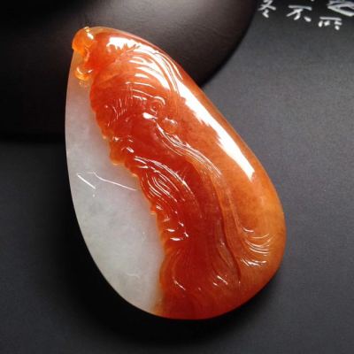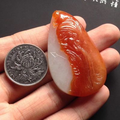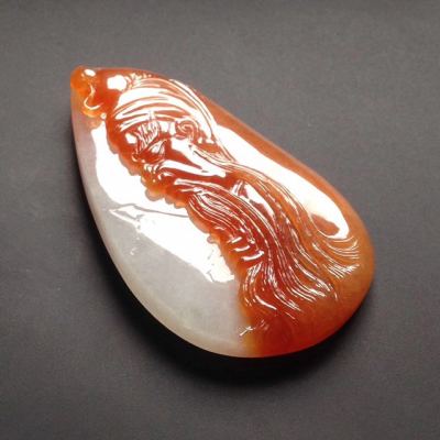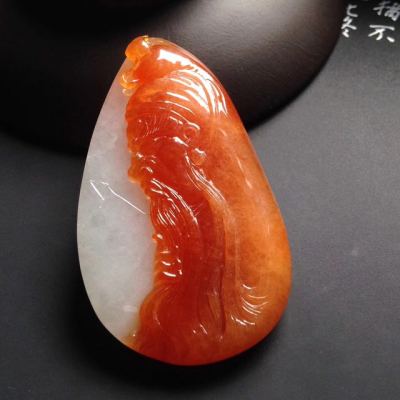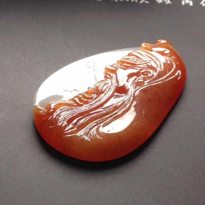 巧雕红翡关公 翡翠吊坠 尺寸55-32-7毫米