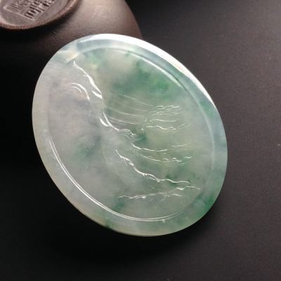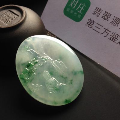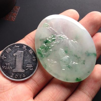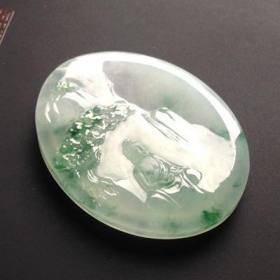 冰种飘花大日如来 翡翠吊坠 尺寸50-40-6.5毫米