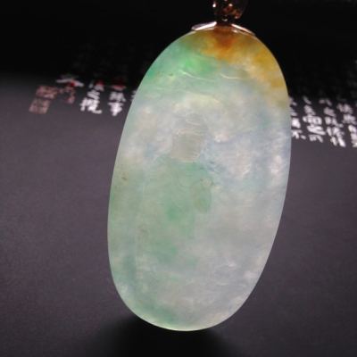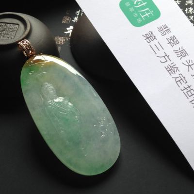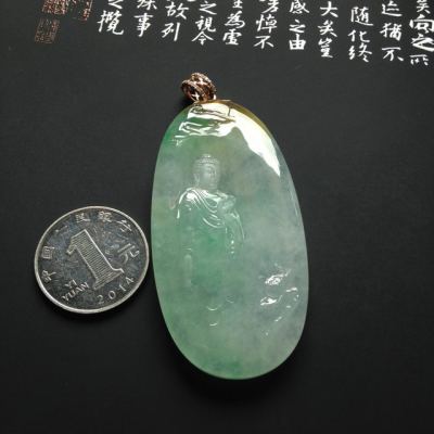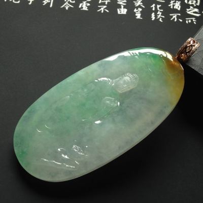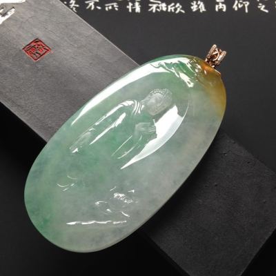 冰种黄加绿大日如来 翡翠吊坠 尺寸65-34-7毫米
