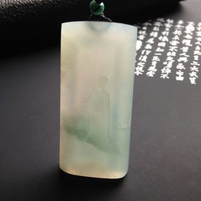 糯冰种晴水悟道 翡翠吊坠 尺寸60-28-9毫米