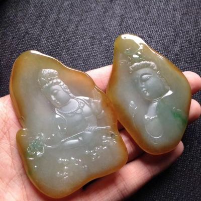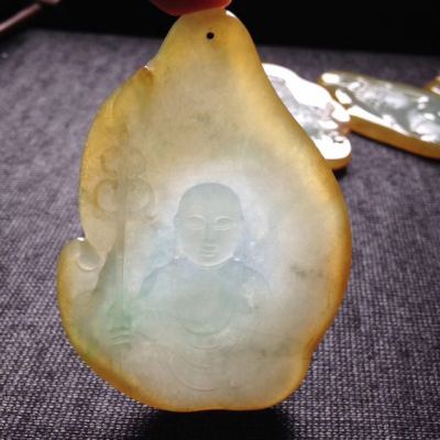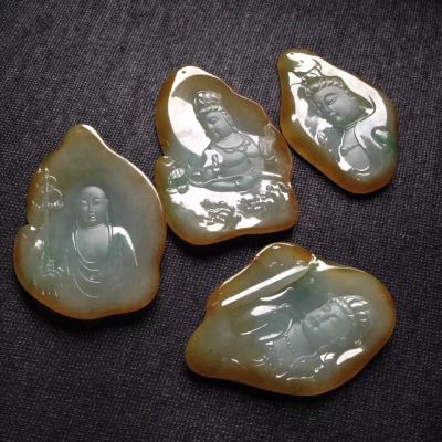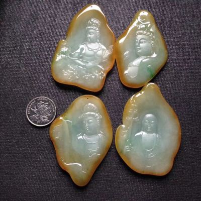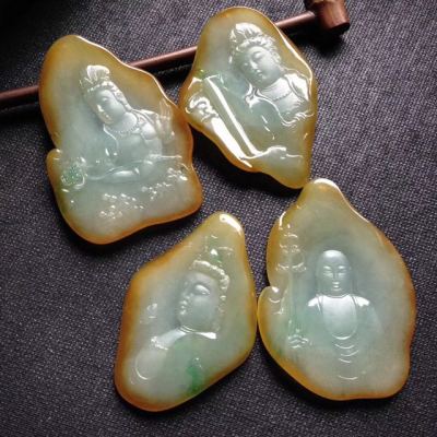 糯冰种黄加绿四大保护神 翡翠吊坠