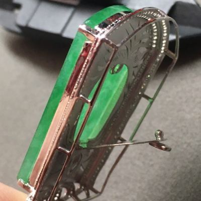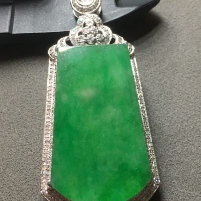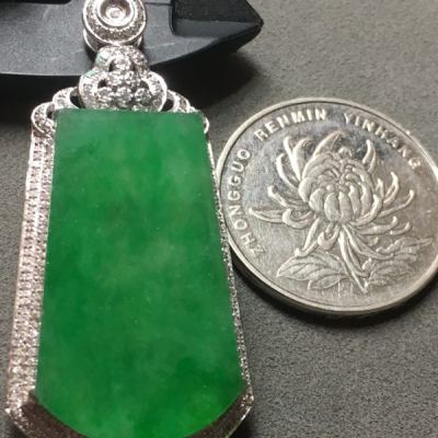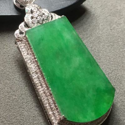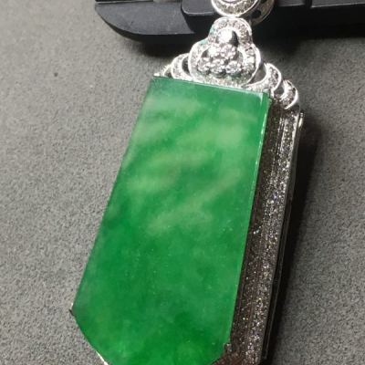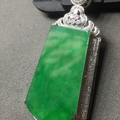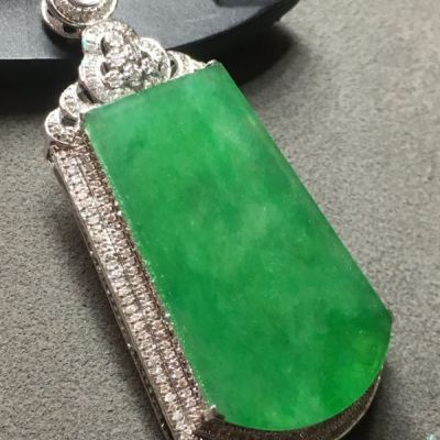 天然翡翠A货冰种冰绿素牌吊坠色泽艳丽种水足!