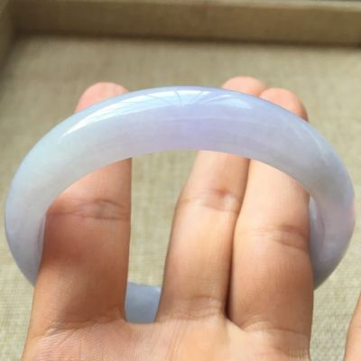 天然翡翠手镯A货 糯冰紫罗兰平安镯