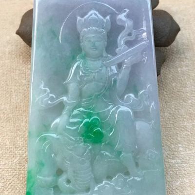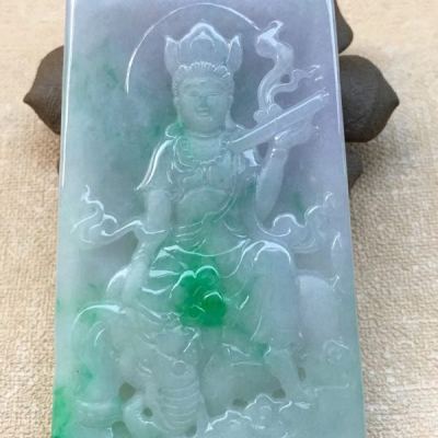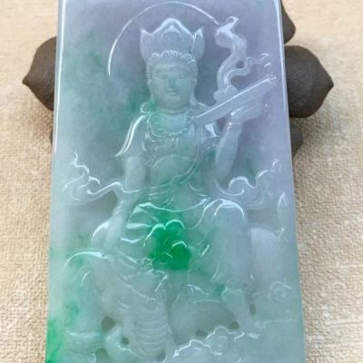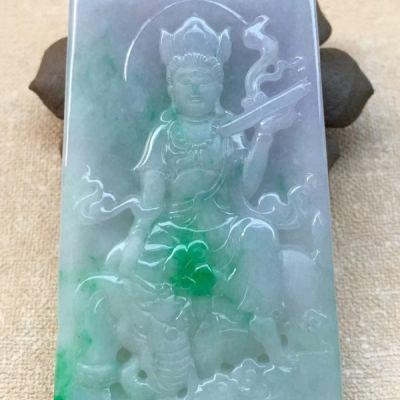 老坑料冰糯种春带彩双色 普贤菩萨吊坠