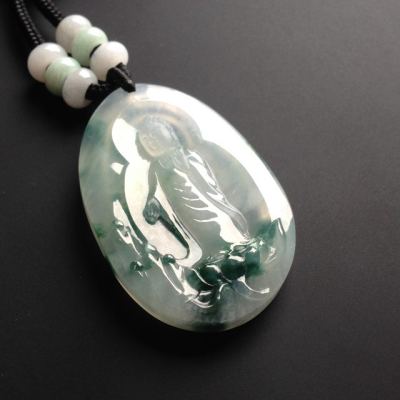 糯冰种飘花大日如来翡翠吊坠 49-33-7毫米