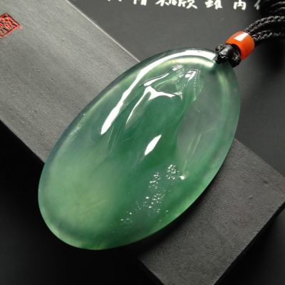 冰种晴水祈福翡翠吊坠 尺寸57-35-11毫米