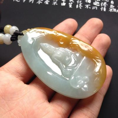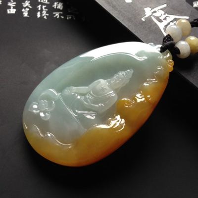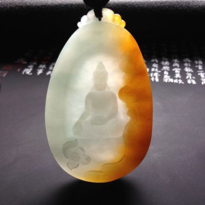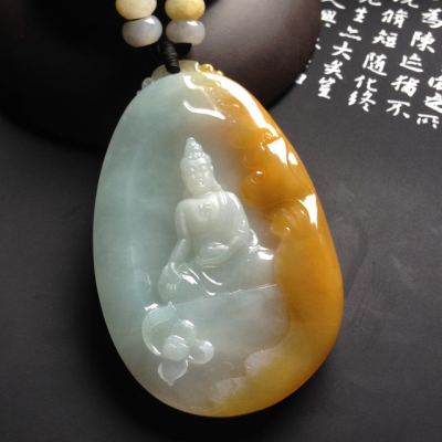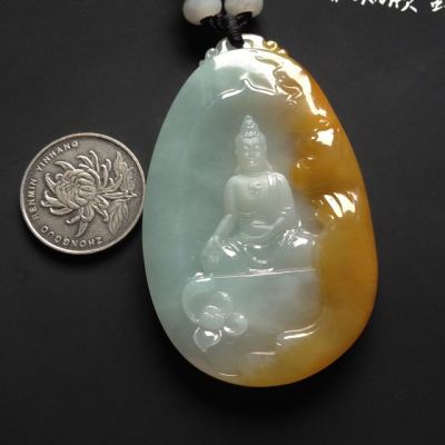 巧雕黄翡释迦摩尼佛翡翠吊坠 尺寸69-43-8毫米