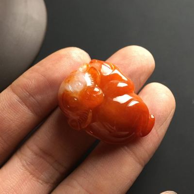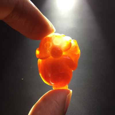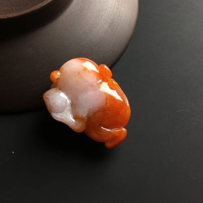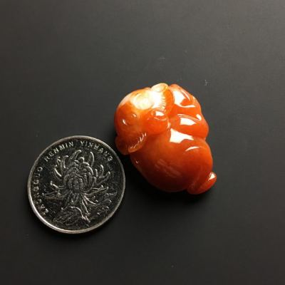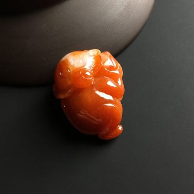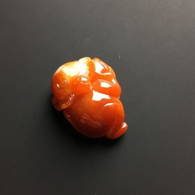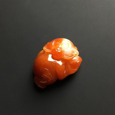 冰种红翡 灵猴献瑞翡翠吊坠 尺寸31-23-11毫米