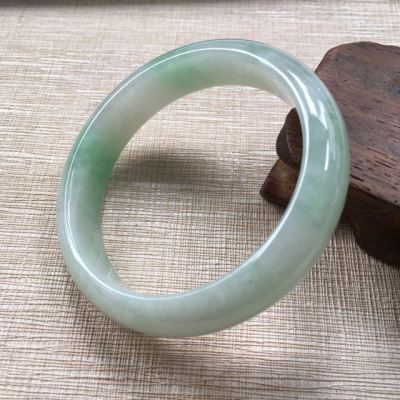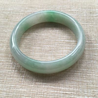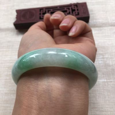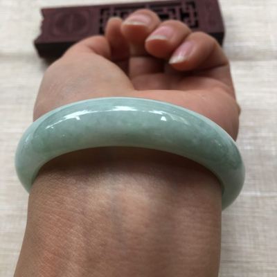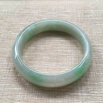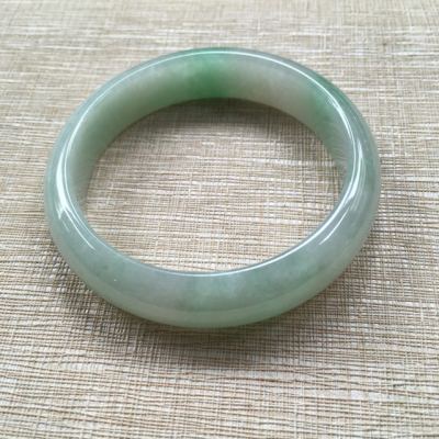 翡翠手镯A货 糯冰种淡绿52正圈翡翠手镯