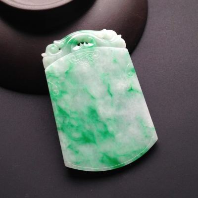 糯冰种阳绿 无事牌翡翠吊坠 尺寸52-34-3毫米