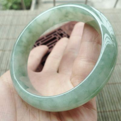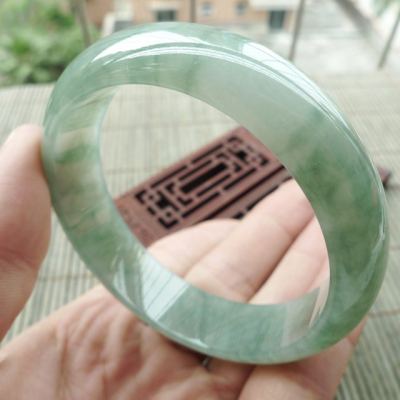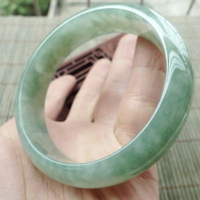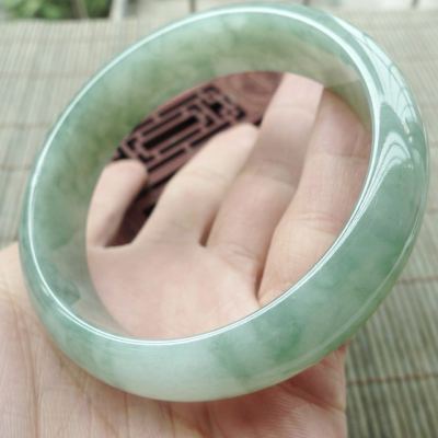 糯冰种飘绿花正装翡翠手镯:56.6mm