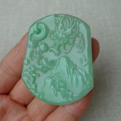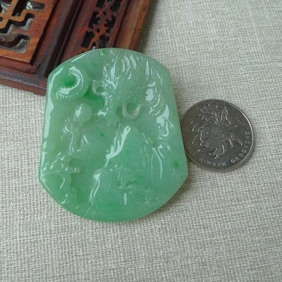 精雕霸气龙牌翡翠挂件 规格:53.6*45.3*5mm