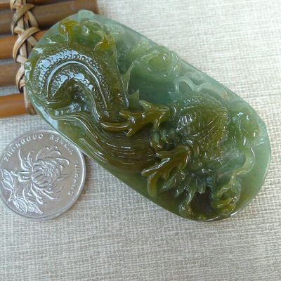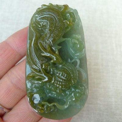 精雕水润龙牌 缅甸天翡翠吊坠 规格:69.8*39.4*14.5MM