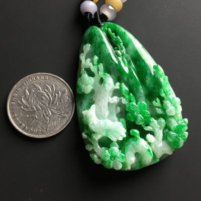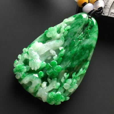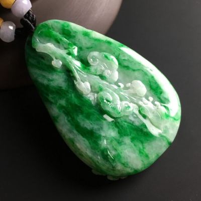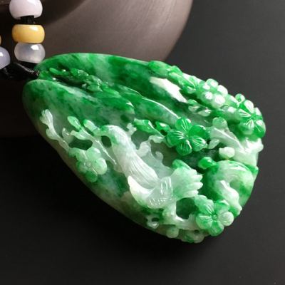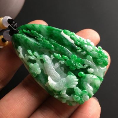 带色喜上眉梢翡翠吊坠 尺寸56-37-10毫米