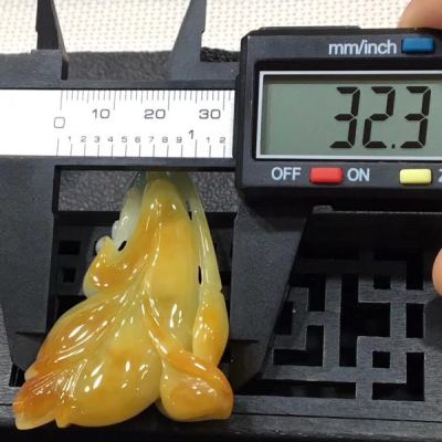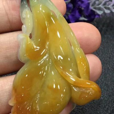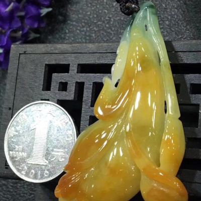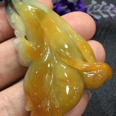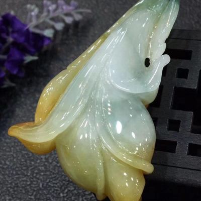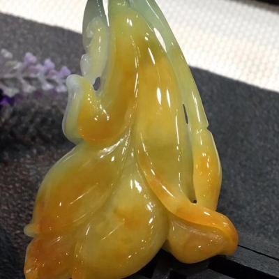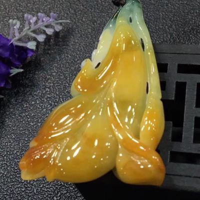 冰黄料翡翠花开富贵吊坠